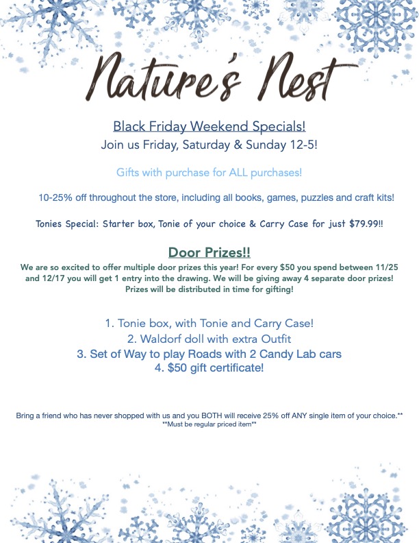 Changes have been coming to Nature’s Nest for a while now and recent developments in my family life have brought light to this being the time to make a shift. It is with a heavy heart that I announce the closure of our physical location. (This is not the end of Nature’s Nest, so keep on reading). I’ve been juggling schedules, working friends, having my teens cover store hours and closing on days I should have been open- it has been an exhausting whirlwind of maneuvers just to keep this running smoothly and unfortunately it can’t continue this way. Don’t worry! The future is bright and we have great things coming!!
